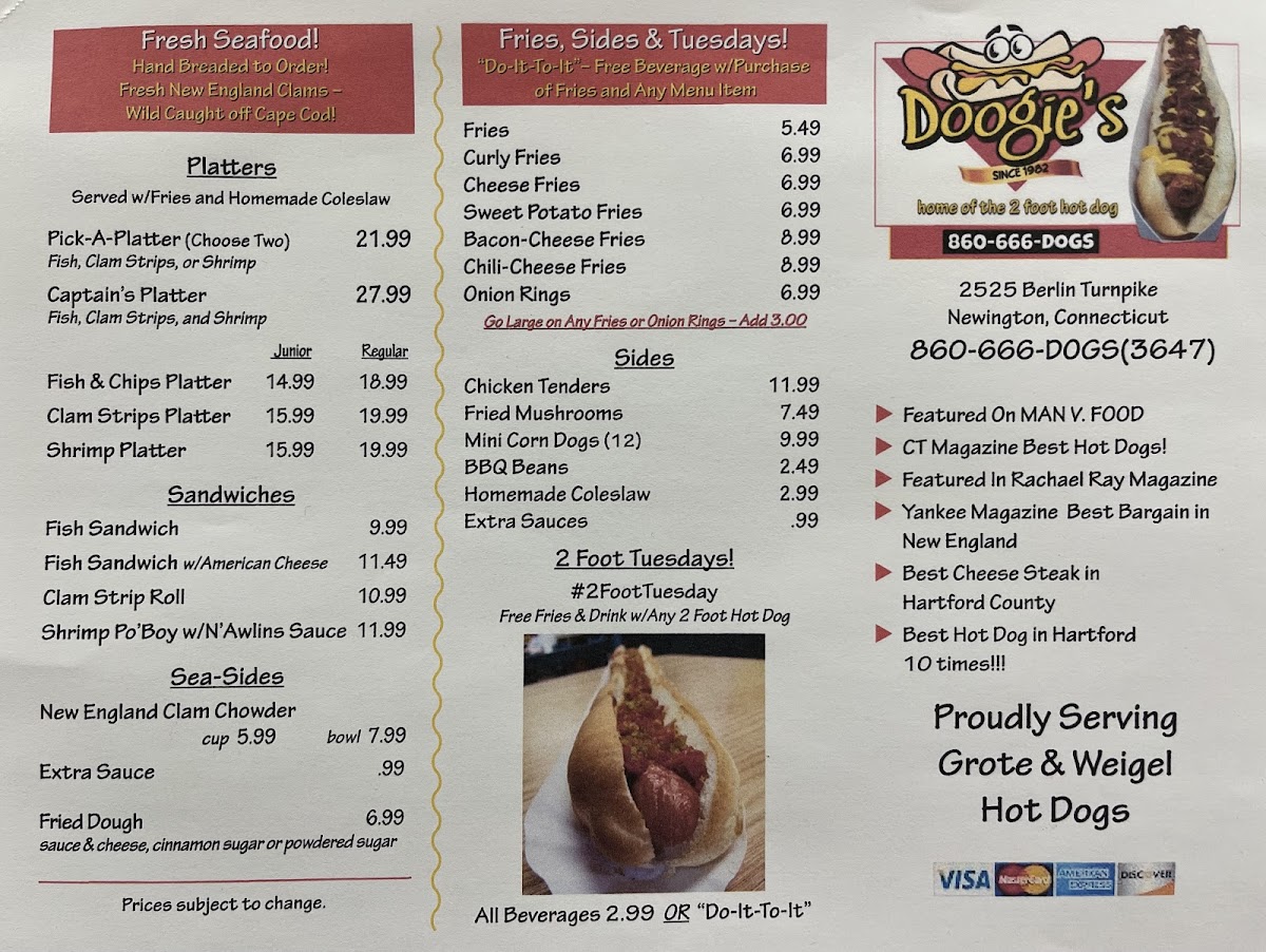 If you're cruising down the Berlin Turnpike in Newington, CT, make sure to stop by Doogie's, a cherished local eatery that's been tantalizing taste buds with mouthwatering hot dogs and hearty comfort food. This unpretentious spot may not boast sleek decor or an extravagant ambiance, but it's the rich flavors and friendly service that keep both locals and visitors coming back for more.